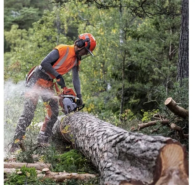 Ein Nachteil des 5,6-PS-Geräts ist der Schallleistungspegel, der mit 119 dB(A) angegeben wird. Damit ist die Schmerzgrenze fürs menschliche Gehör erreicht. Gerade bei regelmäßigen Arbeiten mit der Profi-Motorsäge sollte deshalb ein geeigneter Gehörschutz getragen werden. Der Hersteller selbst hat mit dem Classic Forsthelm einen ergonomischen Gehörschutz für Forst- und Gartenarbeiten im Sortiment.