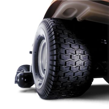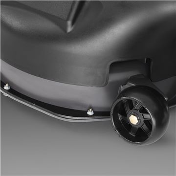 Das Mähdeck ist ausgestattet mit Stützrädern, die dafür Sorgen, dass das Risiko, den Rasen auf unebenem Gelände zu beschädigen, minimiert wird.