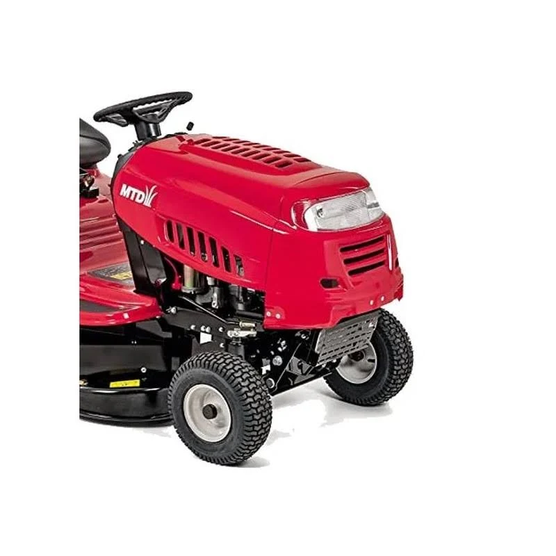 Der MTD 92 ist ein robuster Rasentraktor mit Heckauswurf und 92 cm Schnittbreite, geeignet für Rasenflächen bis 3.500 qm. Für alle, die mehr Leistung fürs Geld wollen. Der 382 ccm MTD-Einzylinder leistet starke 7,1 kW und ist auch für schwierigere Geländeformen geeignet. Hier hilft ihm sein robustes Transmatic-Getriebe mit 6 Vorwärts- und 6 Rückwärtsgängen, die pendelnd aufgehängte Vorderachse sowie sein kleiner Wendekreis von nur 46 cm. Der mitgelieferte Fangkorb hat ein Volumen von 240l, optional können Sie den MTD 92 mit einem Mulchkit ausstatten und so das Schnittgut einfach zur Düngung nutzen. Das stabile Stahl-Mähwerk mit 2 Messern ist in 5 Stufen von 30 bis 95 mm verstellbar. Mit den hellen Frontscheinwerfern ist auch das Arbeiten in der Dämmerung kein Problem. Für Komfort beim Mähen sorgt der bequeme, verstellbare Sitz sowie der Durchsteigerahmen. Alle Bedienelemente sind so angeordnet, dass sie sicher und schnell erreicht werden können. Über die optionale Anhängerkupplung nutzen Sie ein umfangreiches Sortiment an Anhängern und anderen Anbaugeräten. Mit den diversen Transportanhängern, Rasenwalzen, Streuern, Sprühanhängern, dem Rasen- und Laubkehrer, Rasenkamm, Rasenlüfter und schließlich dem Schneeräumschild wird Ihr MTD 92 zum Helfer rund um Haus, Hof und Garten für wirklich jede Jahreszeit.