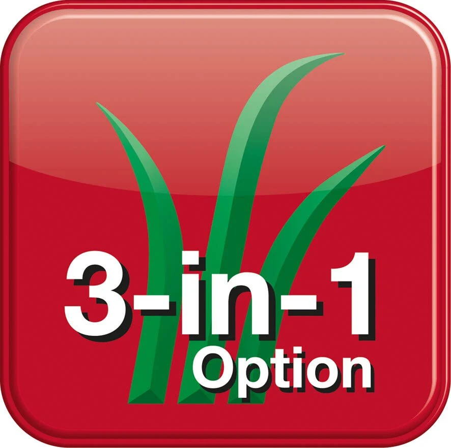 - Seitenauswurf und optionale Mulchfunktion (Mulchkeil nicht im Lieferumfang enthalten)