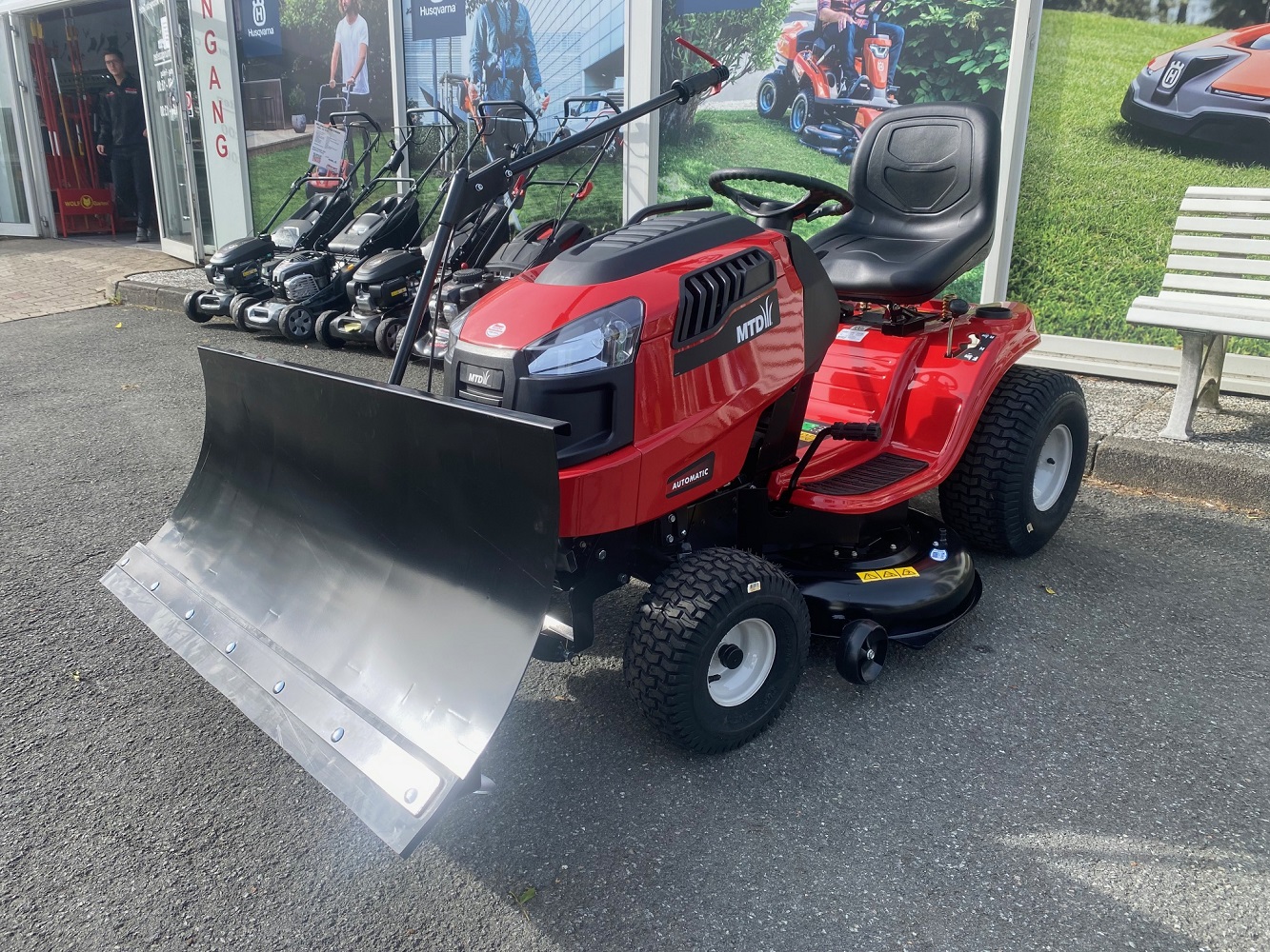Das Schneeräumschild kann vom Fahrersitz aus angehoben werden
