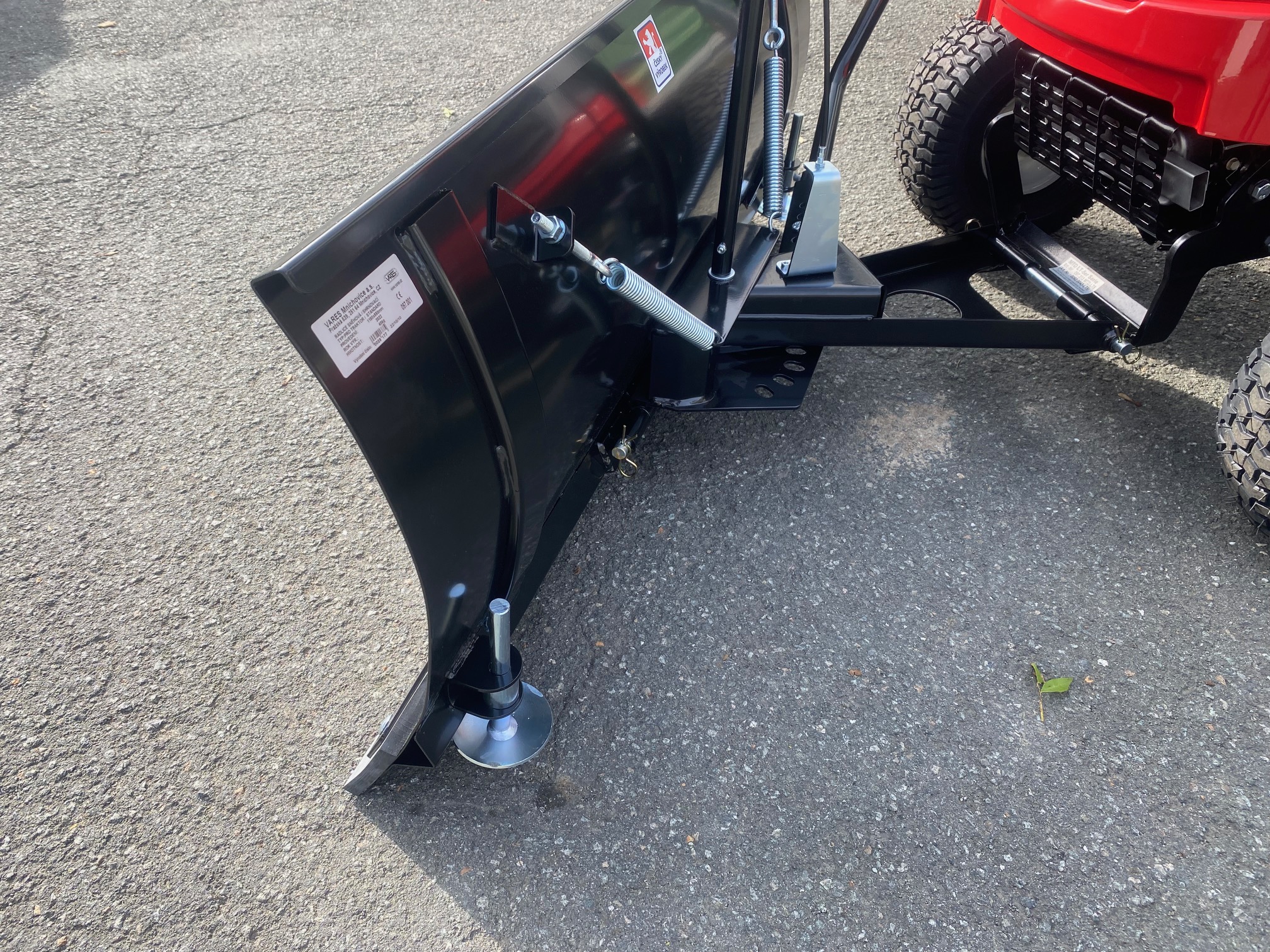 Das Räumschild besitzt eine Sicherheits- Klappmechanik. Trifft das Schneeschild auf ein Hindernis, z.B. auf einen stark hervorstehenden Kanaldeckel, wird eine Überlastsicherung ausgelöst.